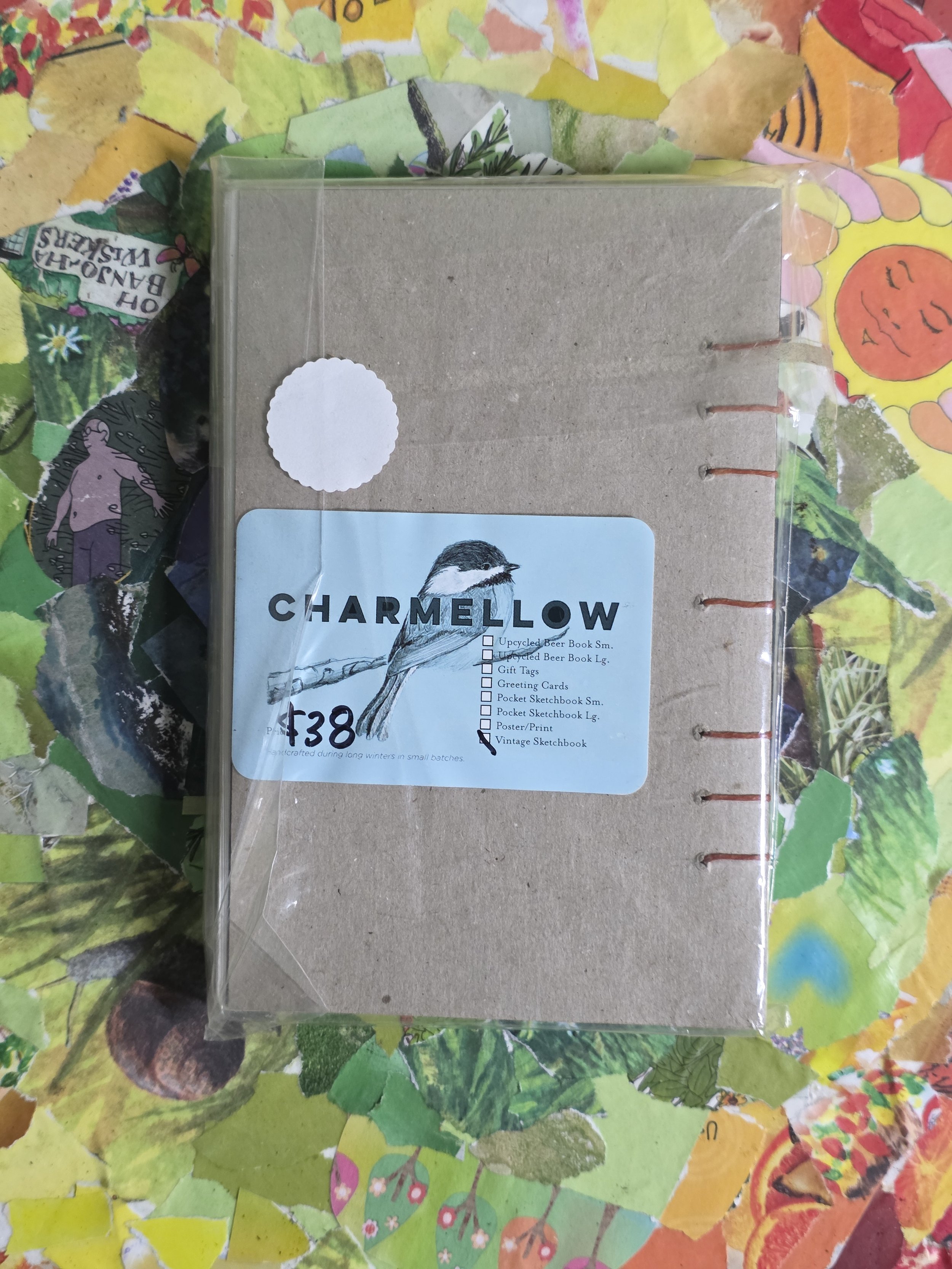 Handmade by Charmellow- 4”6.5” sketchbook made to impress, with it’s vintage charm and beautiful binding. How are you not going to be inspired when this is what you get to use?! Snag this beauty up before it’s gone!